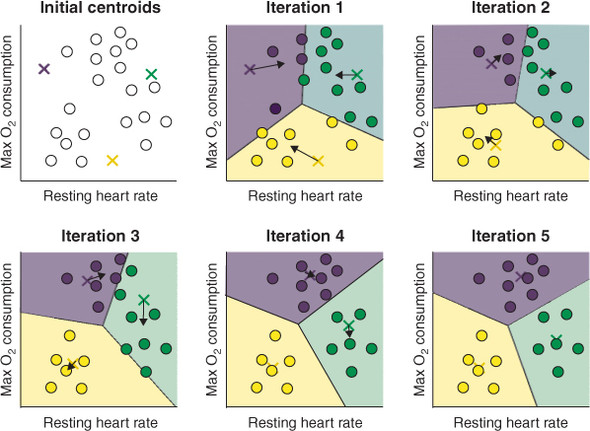 - 모든 개체가 군집으로 할당될 때까지 위 과정 반복